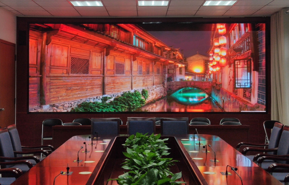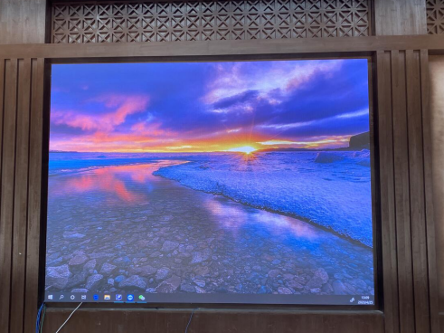 本項目案例是我公司(榮臻電子)在吉林某單位會議室安裝的一個P2.5小間距全彩顯示屏項目,項目的具體展示效果如下: